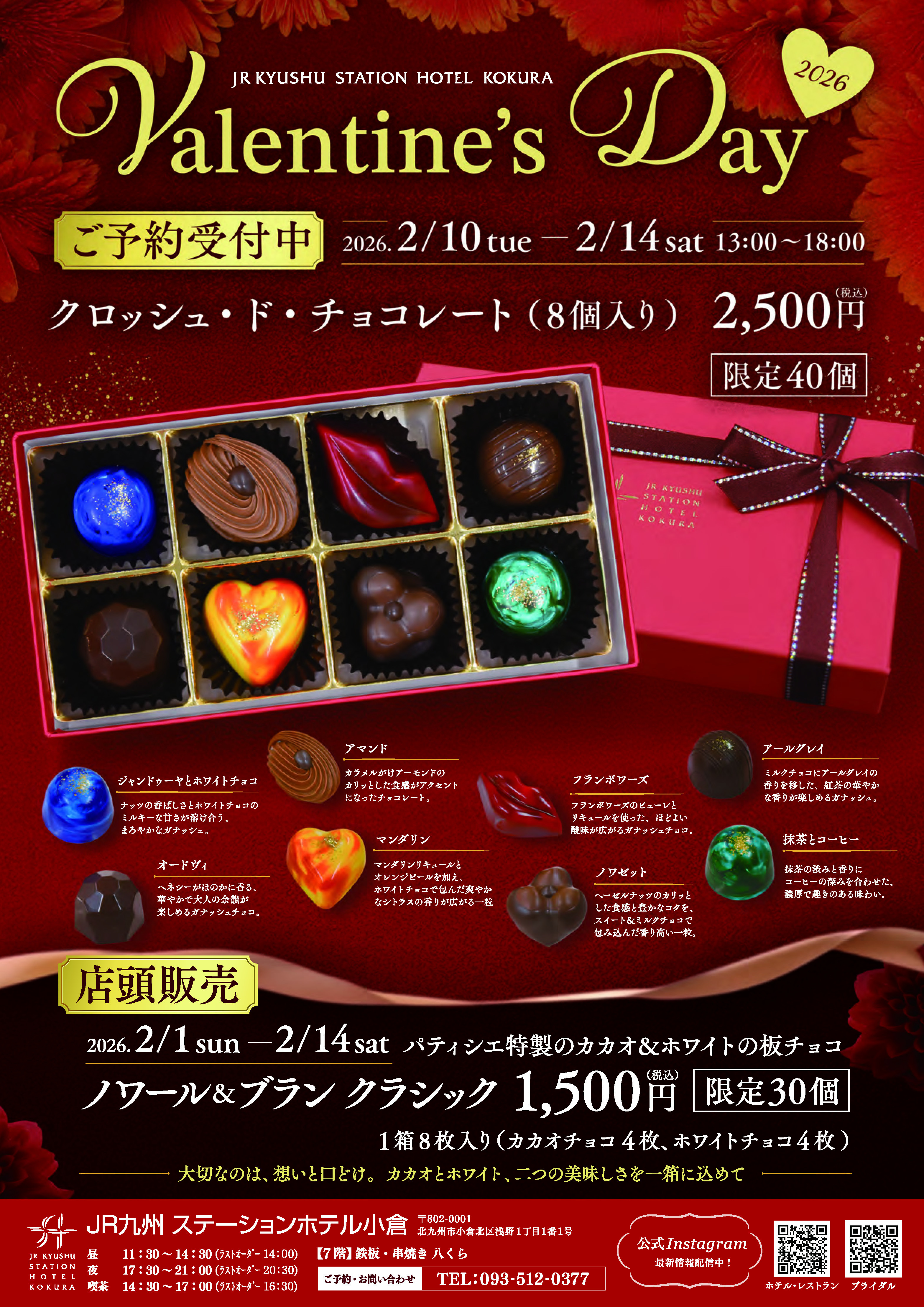 JR九州ステーションホテル小倉では、2026年バレンタインチョコレートのご予約受付を開始いたしました。